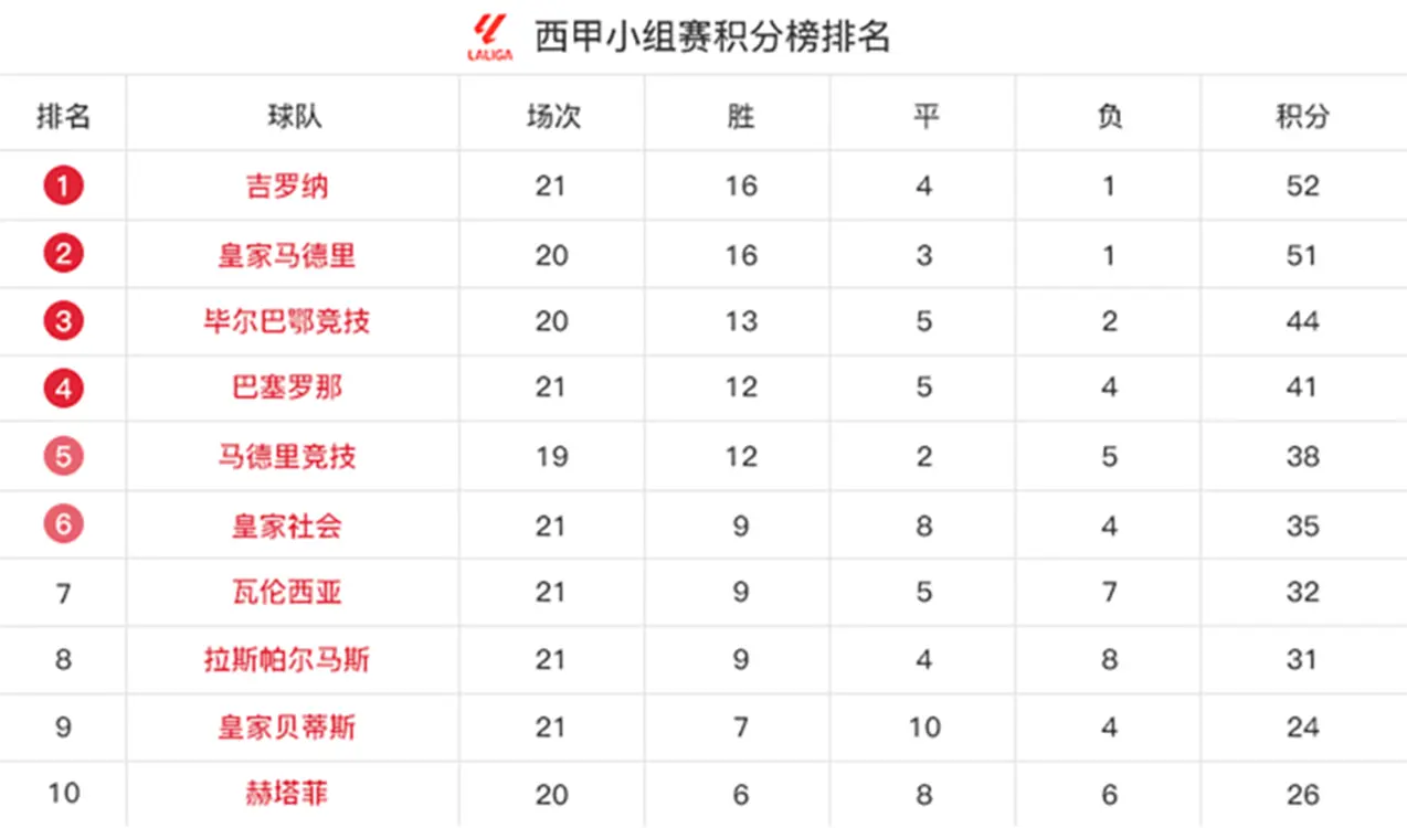 西甲第19轮,吉罗纳主场4-3击败马德里竞技。
